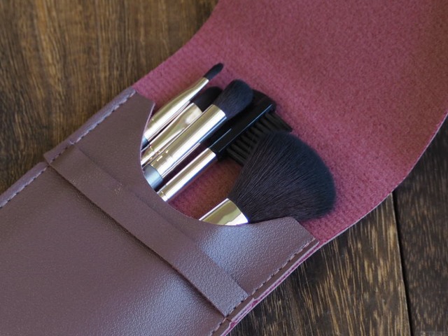 持ち運びに便利な専用ポーチ付きの、メイクブラシ5点セットです。