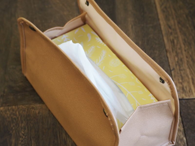 高級感のあるレザー調素材を使用した、おしゃれなティッシュケースです。
