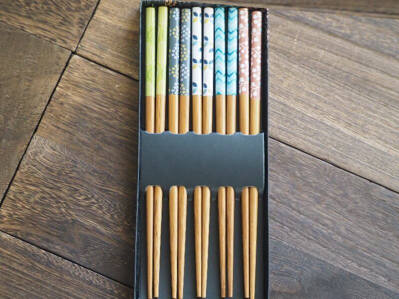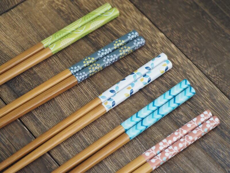 北欧柄のかわいい箸5膳セット 竹製 ナチュラルデザイン 食卓用 箱入りギフトにも