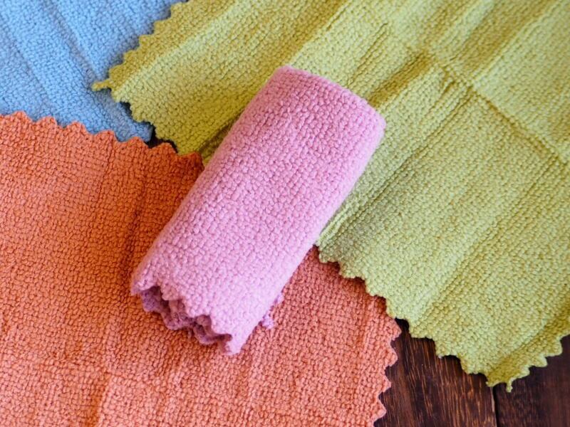 5色入りなので、用途ごとに色分けして使えるのが便利。柔らかくて吸水性のある素材なので、水拭き・乾拭きどちらにも使え、洗って繰り返し使えます。