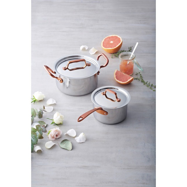 全面多層構造で無水・無油調理をはじめどんな調理も可能にするビタクラフトの利点を継承しながら、軽くコンパクトで使いやすいサイズ感に。ローズゴールドのハンドルが上品なデザインで、日々の料理を華やかに演出してくれます。